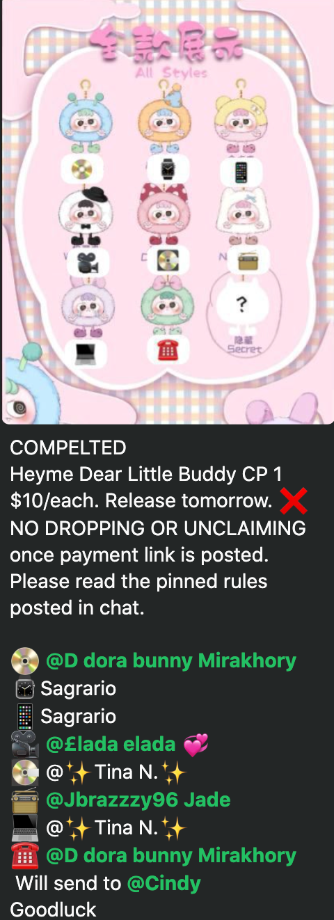 Heyme Dear Little Buddy CP 1 $10/each. Release tomorrow. ❌NO DROPPING OR UNCLAIMING once payment link is posted. Please read the pinned rules posted in chat.